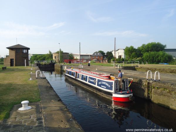 Approaching Knostrop Fall Lock. The circular structure on the left was a pier of a railway viaduct.