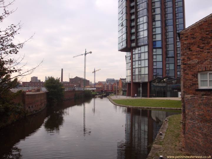 Looking towards Lock 3 from Lock 2, Ancoats. Beside Lock 3 is a startling apartment block which is part of the New Islington development.