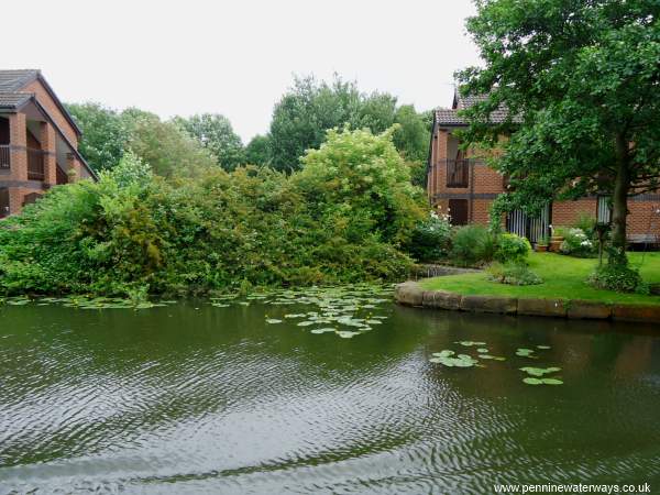 A short distance from Waters Meetings is Stretford Marina, flanked by apartments and houses.