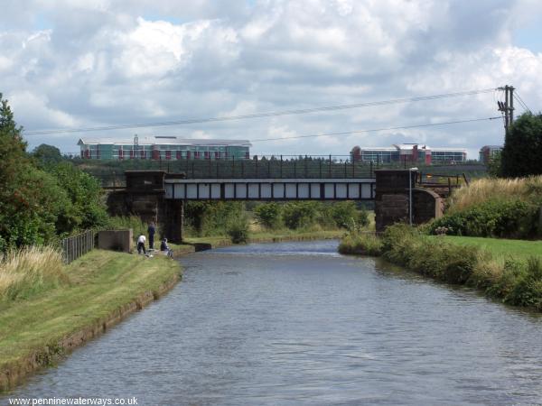 Looking back across Norton Aqueduct towards Waters Meeting and the M56 motorway.
