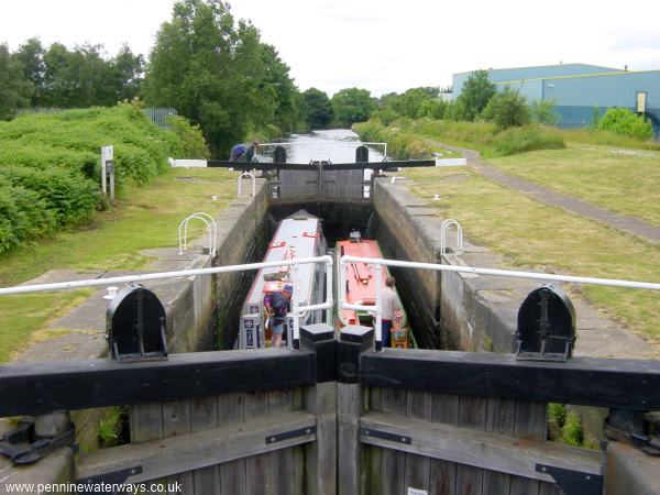 Looking back to the entrance to Thornhill Flood Lock on the right.
