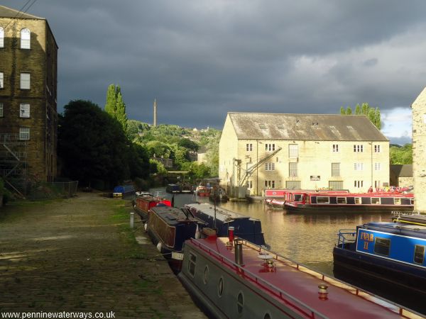 Sowerby Bridge Canal Basin, with the restored Salt Warehouse on the left.