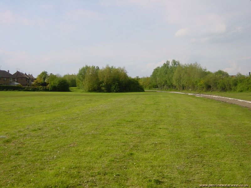 Looking back towards Swinton from the road bridge. The worn track follows the route of the canal.