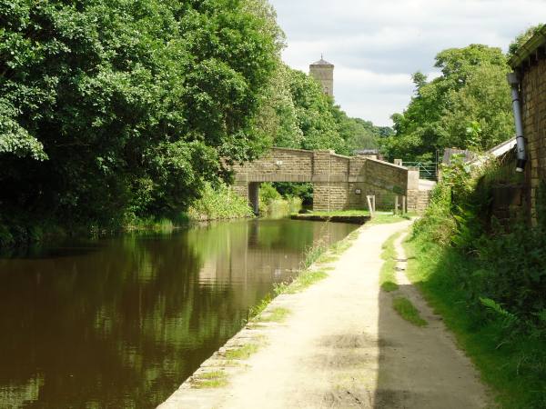 Looking south-east towards the restored Golcar aqueduct across the River Colne, approaching Milnsbridge.