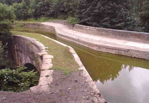 Golcar Aqueduct, to the west of Milnsbridge, underwent remedial work as part of the canal restoration project. This view was in January 2000.