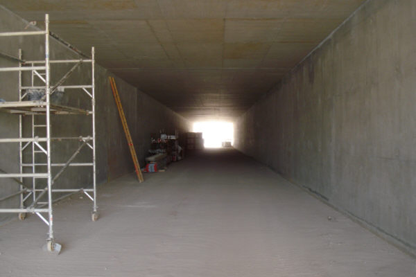 Inside the new tunnel in front of the Cunard Building at the Pier Head. The tunnel was constructed as a steel-reinforced concrete box culvert.