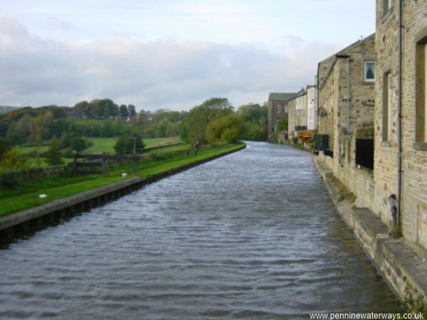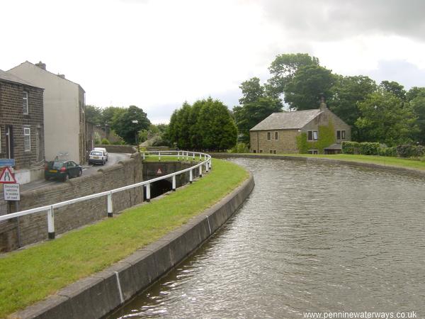 Looking west at Kirkgate House as the canal slices through the village of Kildwick.