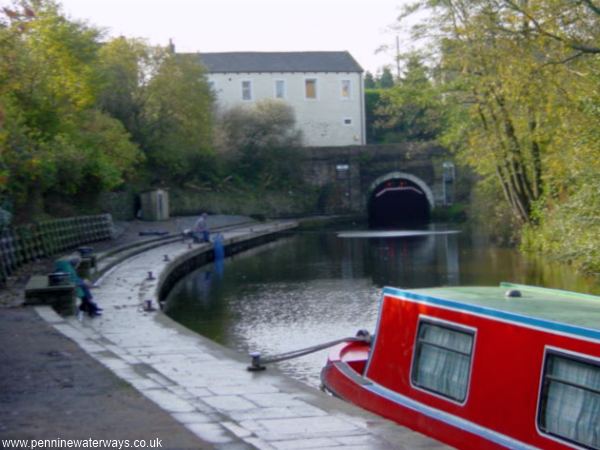 The canal emerges from the western portal of Foulridge Tunnel.