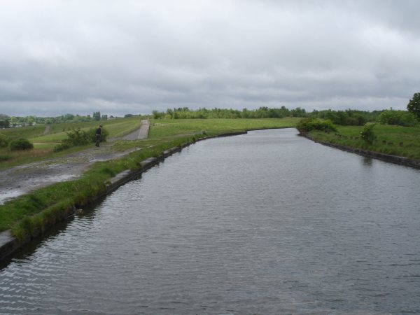 Looking back towards Pennington Flash from Springfield Bridge, Leigh. A stream passes below the canal through a small aqueduct.