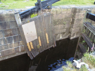 The photograph above right shows the badly damaged and inoperable gate at Lock 30, which has since been replaced.