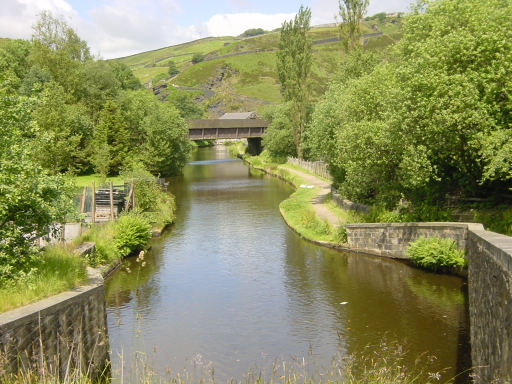 The railway re-crosses the canal on Gauxholme Railway Bridge just below Copperas House Bridge.